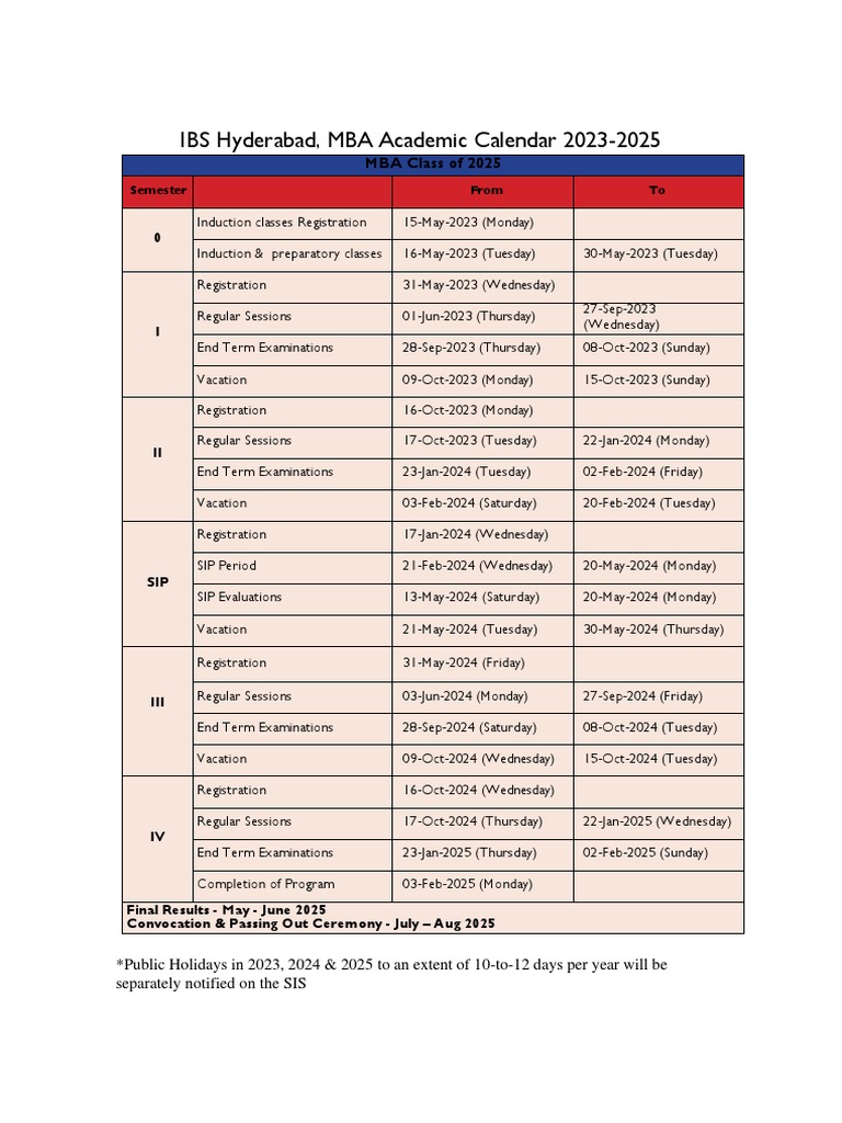 IBS Hyderabad MBA Academic Calendar 2023 2025 PDF Academic Term
