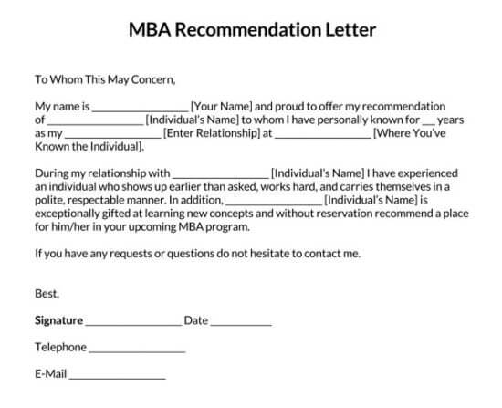 Free MBA Letter of Recommendation Template with Samples PDF Word