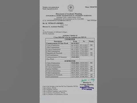 JNTUK UNIVERSITY MCA AND MBA NEW ACADEMIC 2023 2024 CALENDAR #