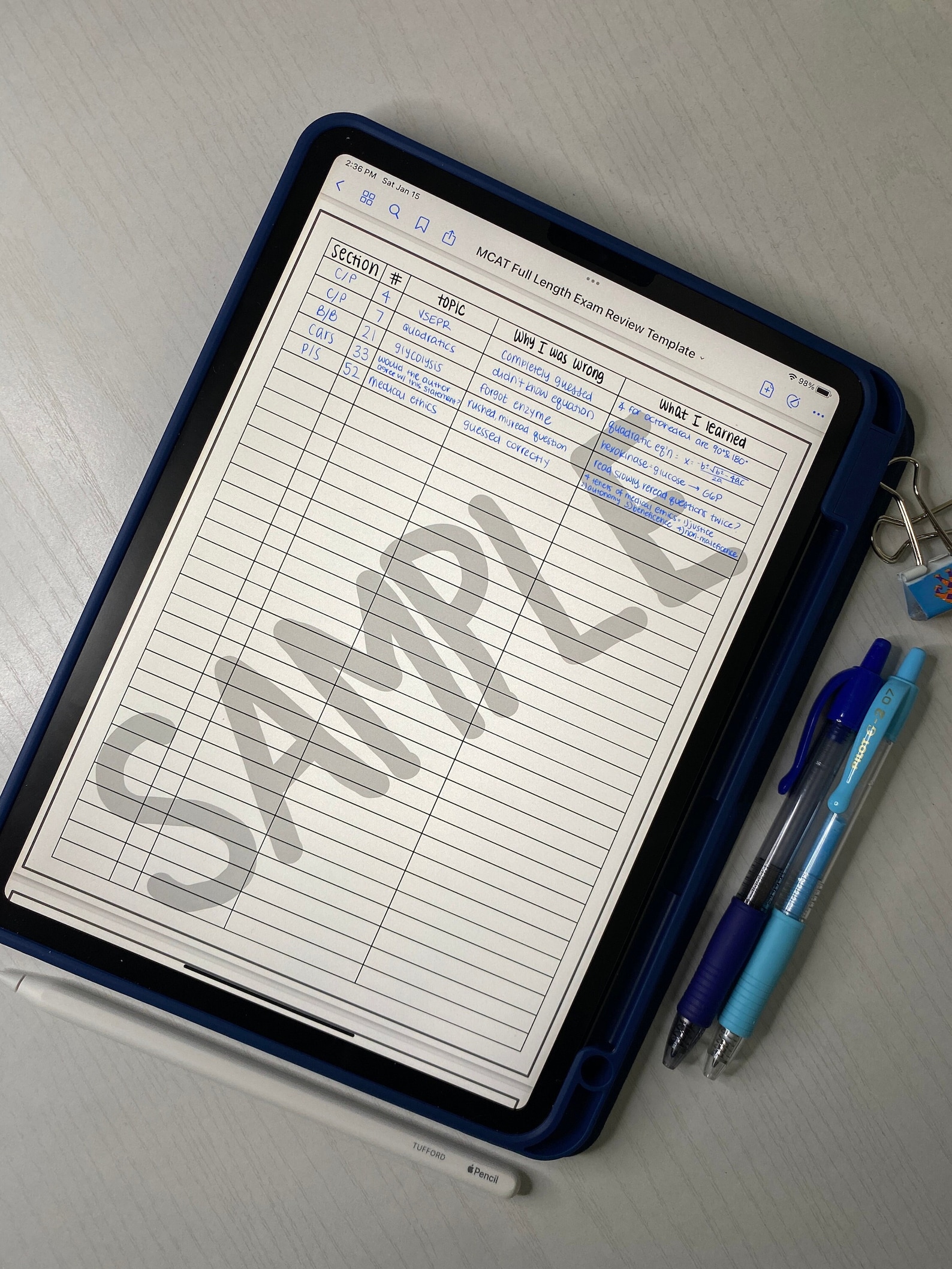 MCAT Full Length Exam Tracking Spreadsheet Track Practice Exams Plan