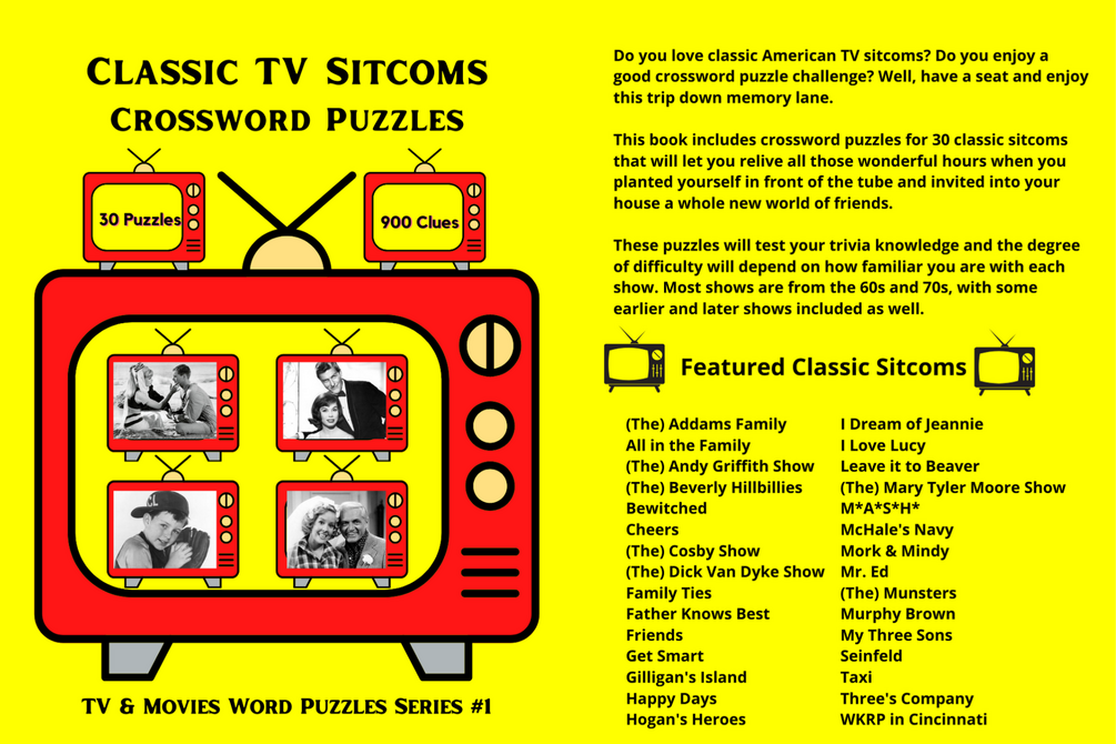 CLASSIC TV SITCOMS Crossword Puzzle Book 30 Puzzles Instant Download