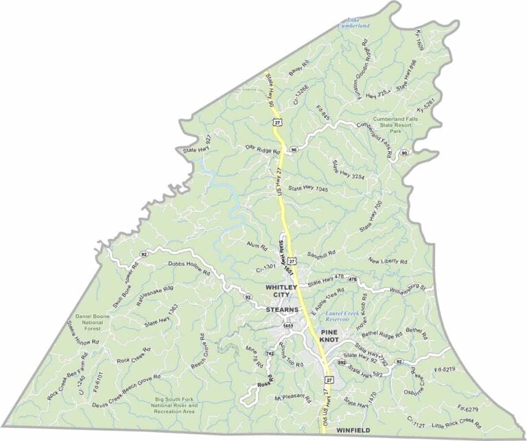 McCreary County on the map of Kentucky 2025 Cities roads borders and