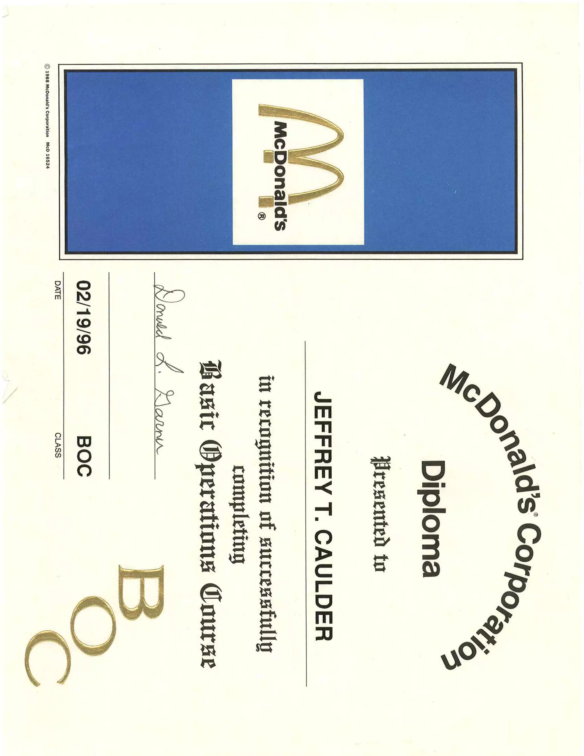 Here are some of the images for Mcdonalds Certificates that we found in our website database.