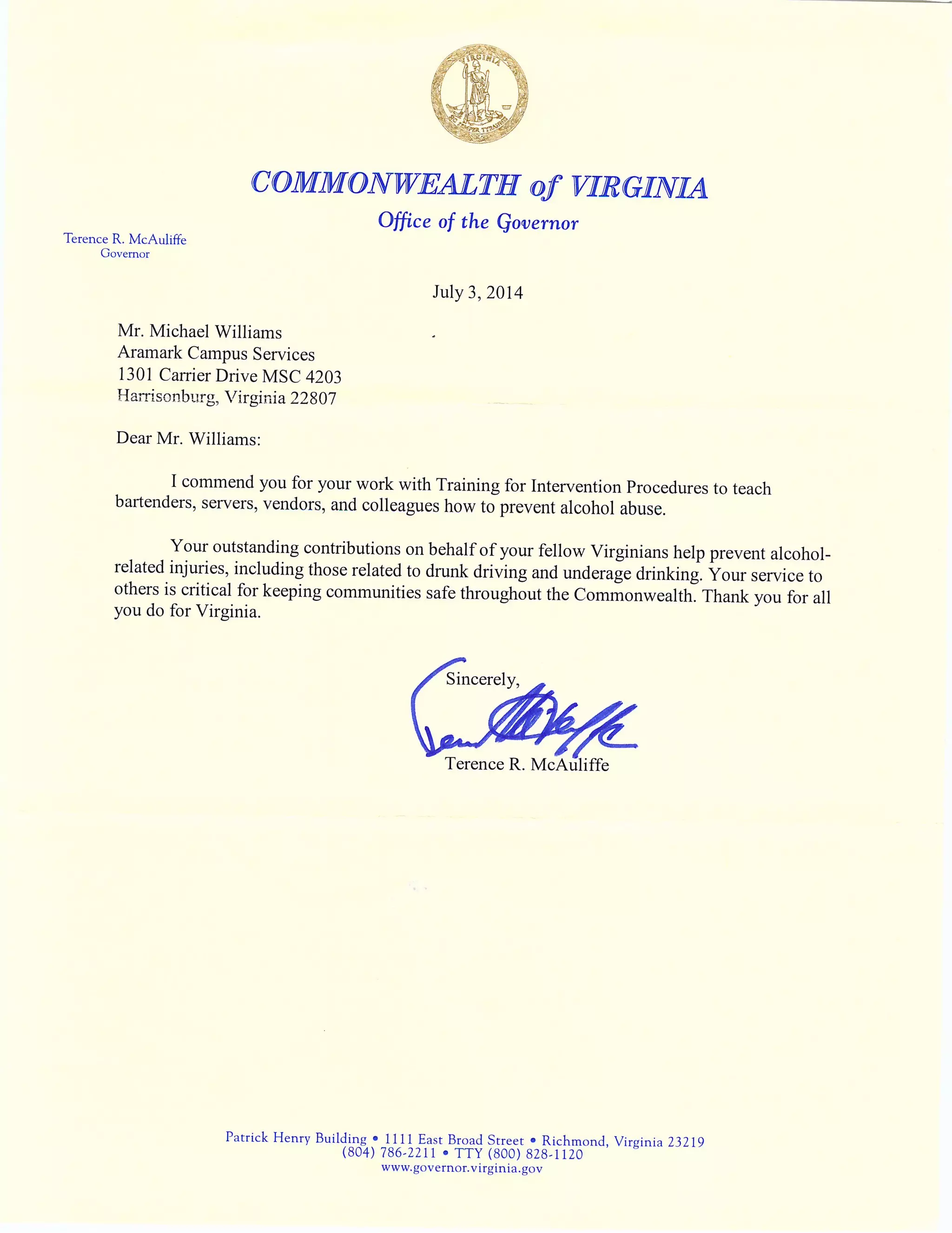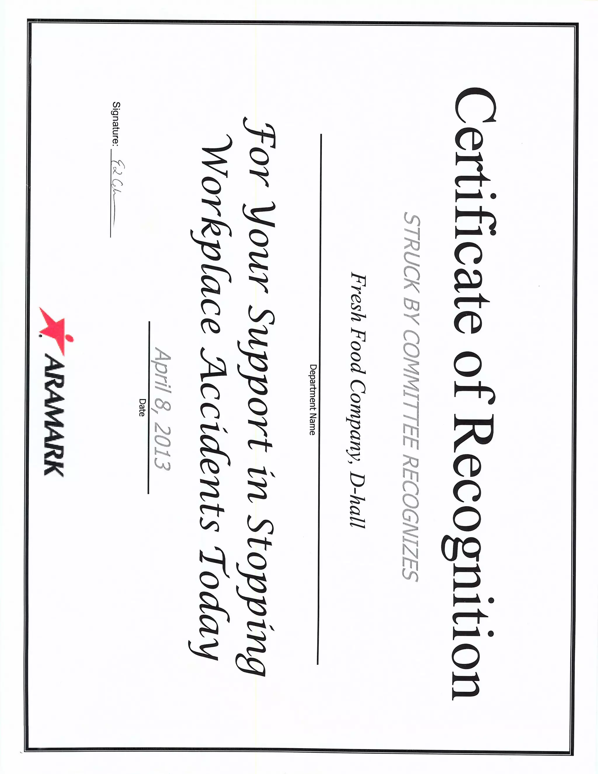 ARAMRK Safety Recognition Award PDF