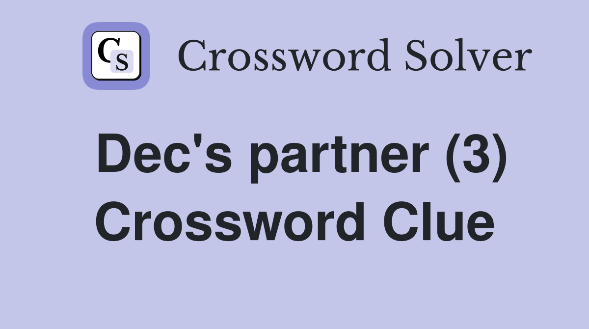 Dec s partner (3) Crossword Clue Answers Crossword Solver