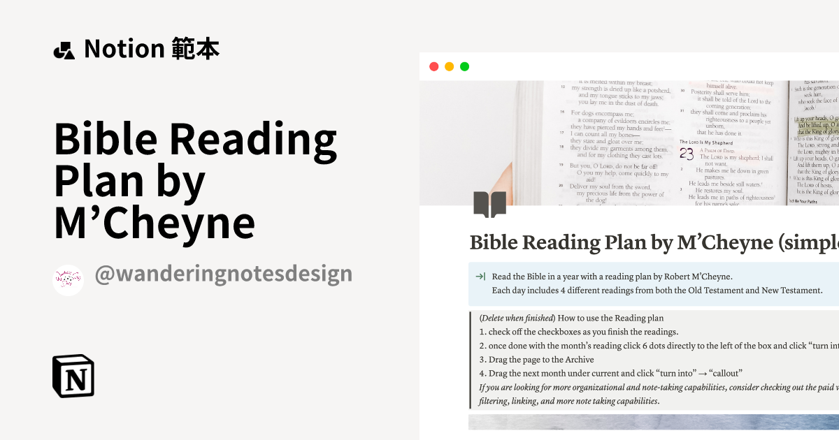 Bible Reading Plan by M Cheyne 範本 Notion Marketplace