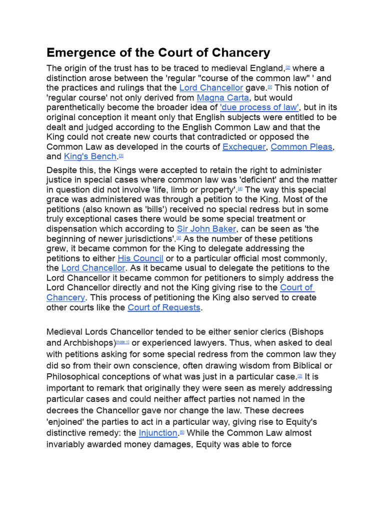 Emergence of The Court of Chancery PDF Court Of Chancery Common Law
