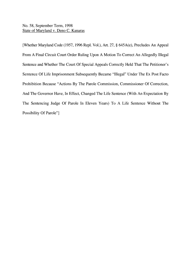 No 58 September Term 1998 State of Maryland Maryland Courts