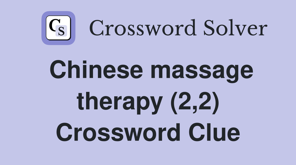 Chinese massage therapy (2 2) Crossword Clue Answers Crossword Solver