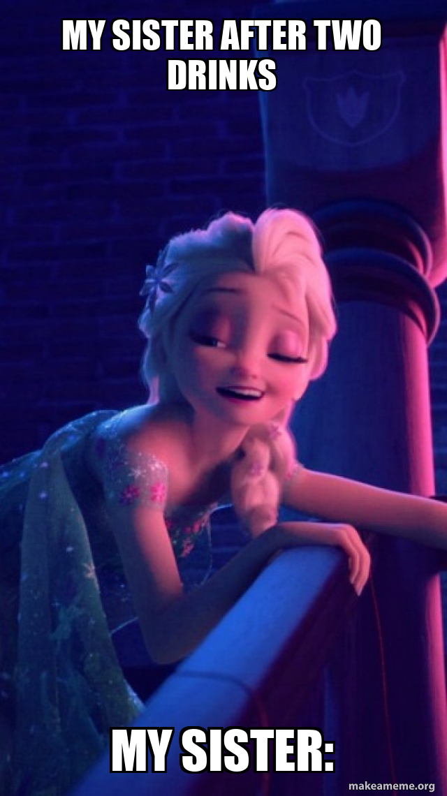 My sister after two drinks My sister: Drunk Elsa Meme Generator