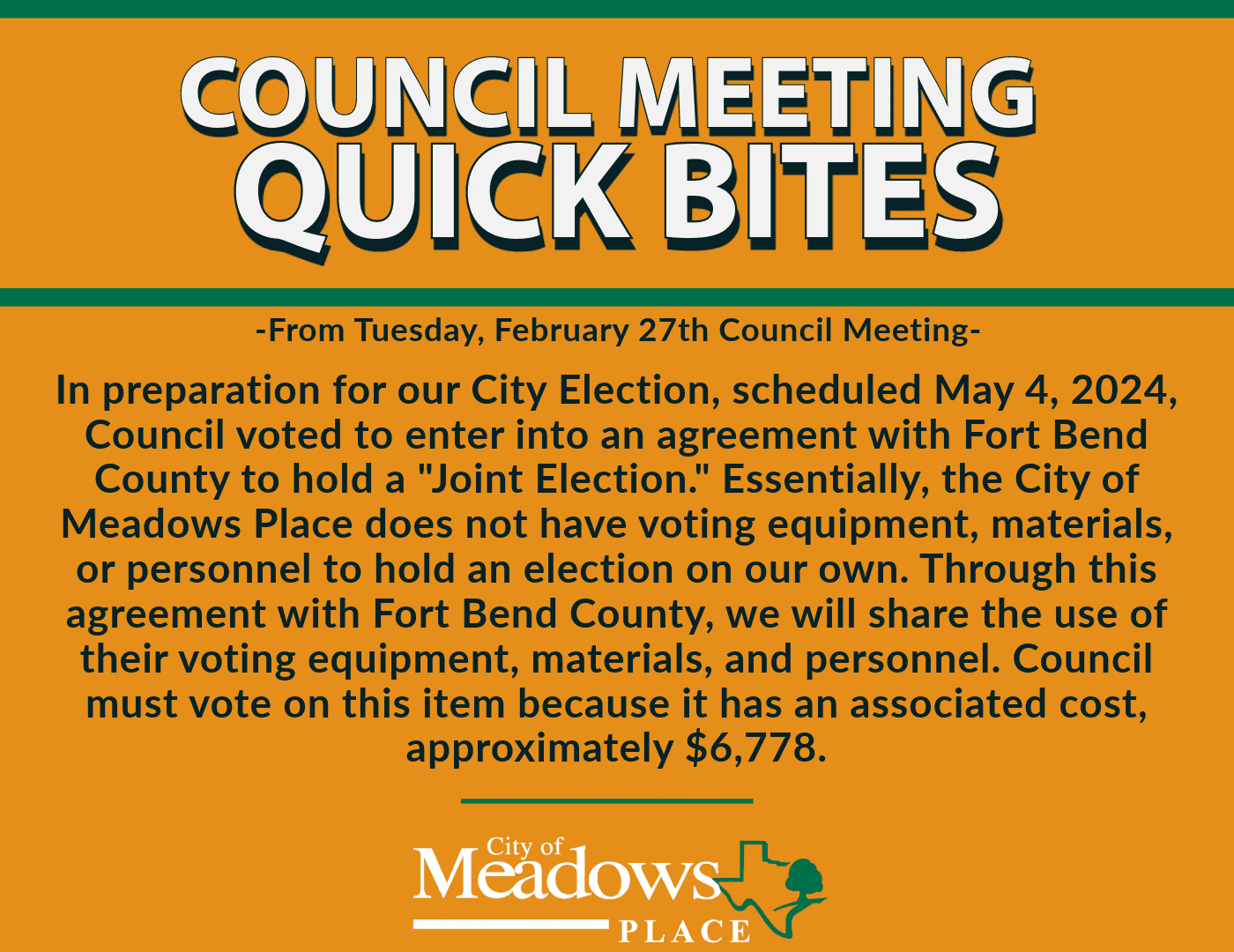 COUNCIL QUICK BITES FEBRUARY 27 2024 City of Meadows Place