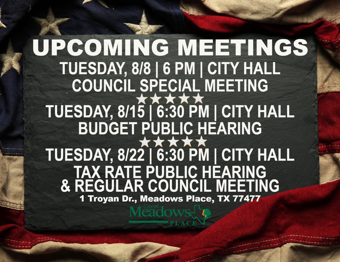 Upcoming Council Meetings August City of Meadows Place