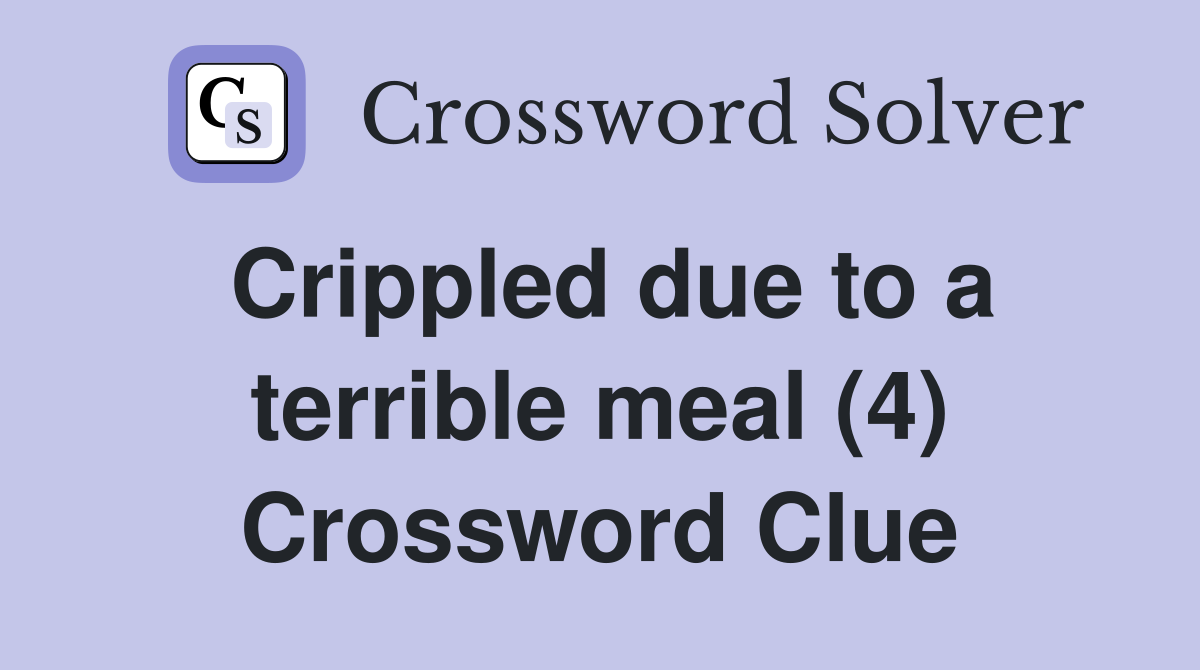 Crippled due to a terrible meal (4) Crossword Clue Answers