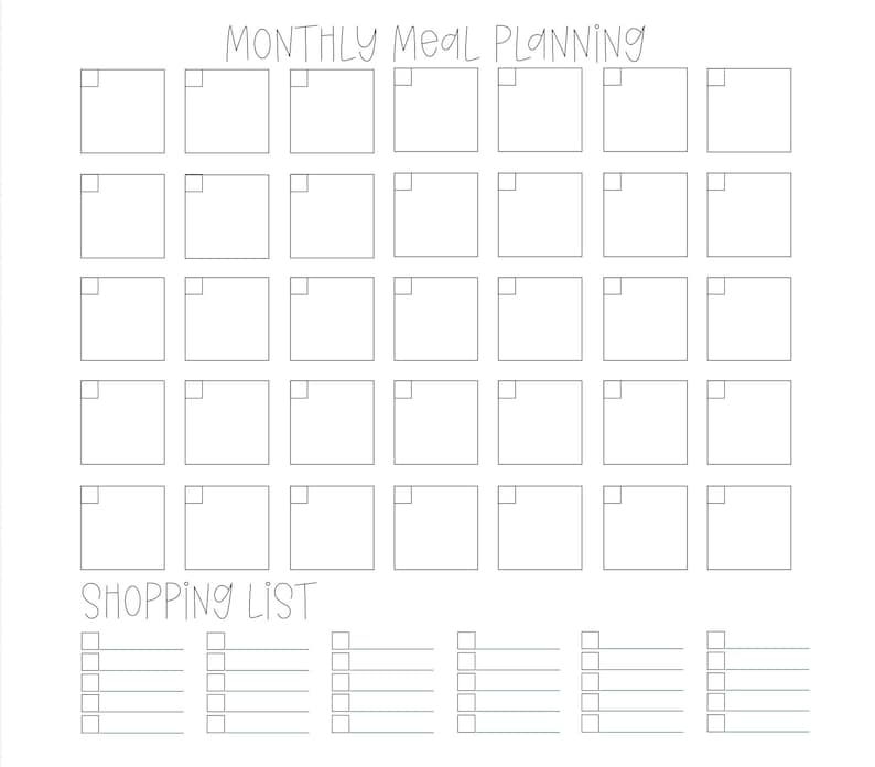 Monthly Meal Plan Printable Template Digital Download Minimalist Layout