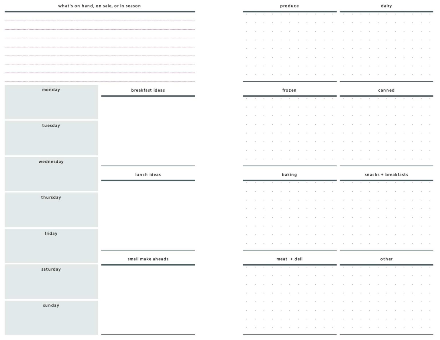 Weekly Meal Plan Printable Template Digital Download Minimalist Layout