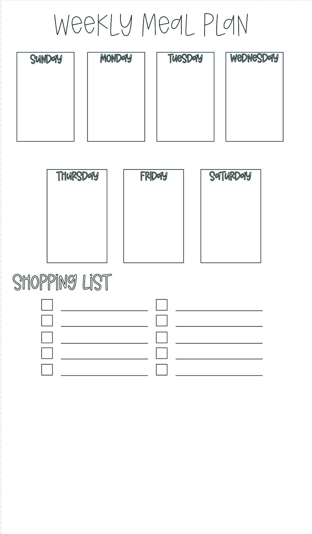 Printable Weekly Meal Plan Template Etsy