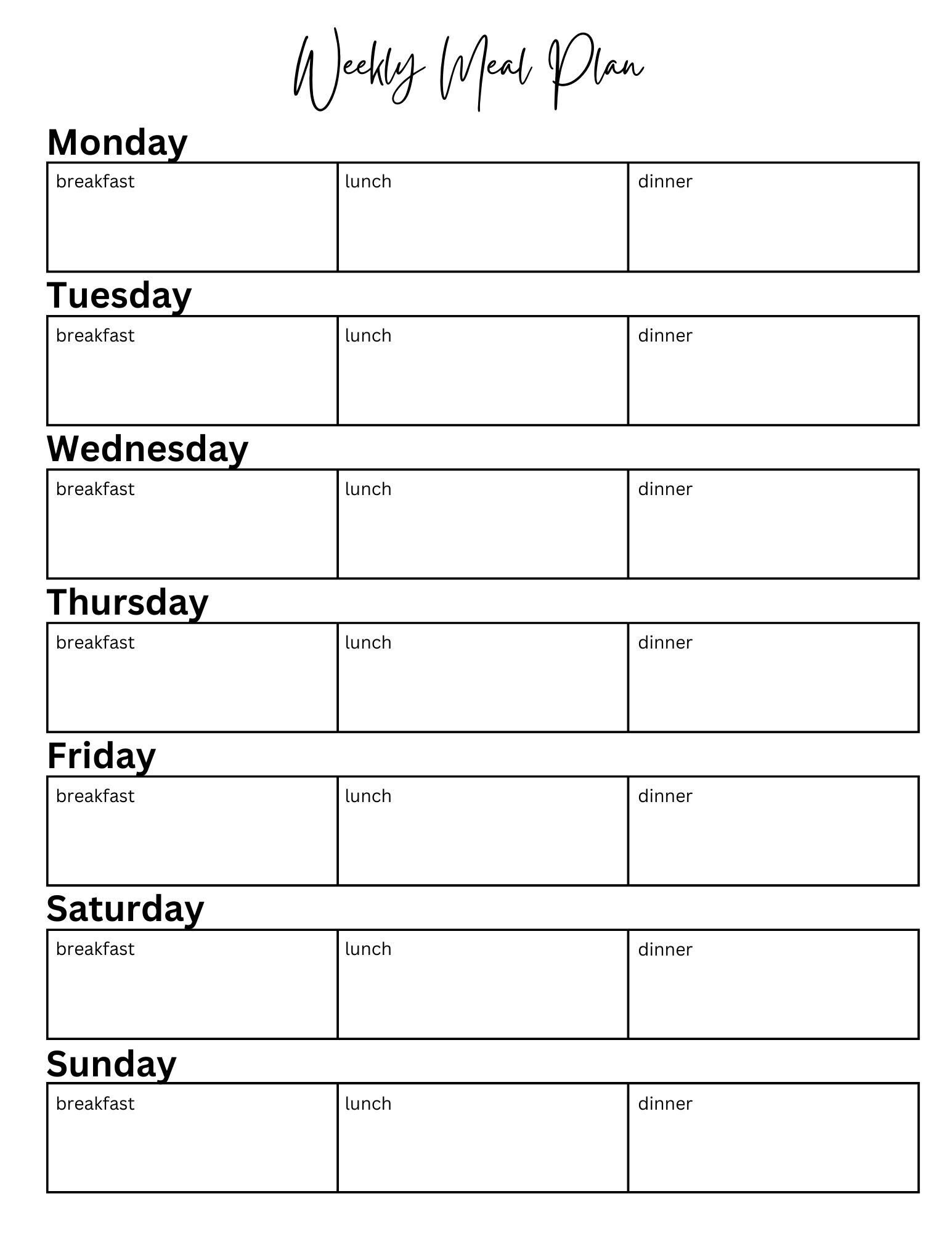 Weekly Meal Plan Printable Template