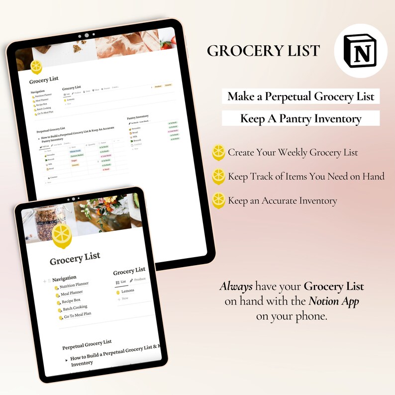 Meal Planner Notion Template Digital Recipe Book Grocery List