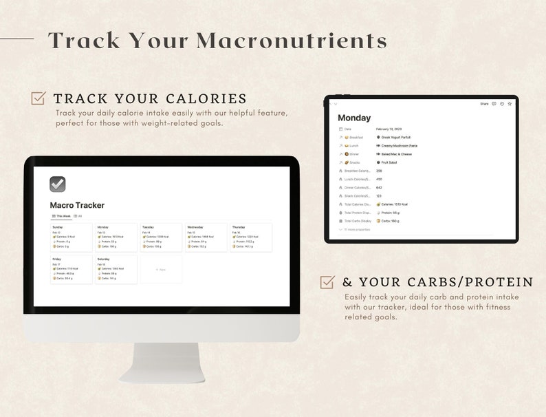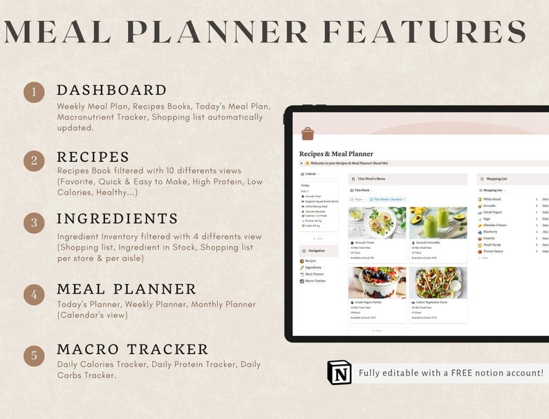 Meal Planner Notion Template Nutrition and Recipe Planner Digital
