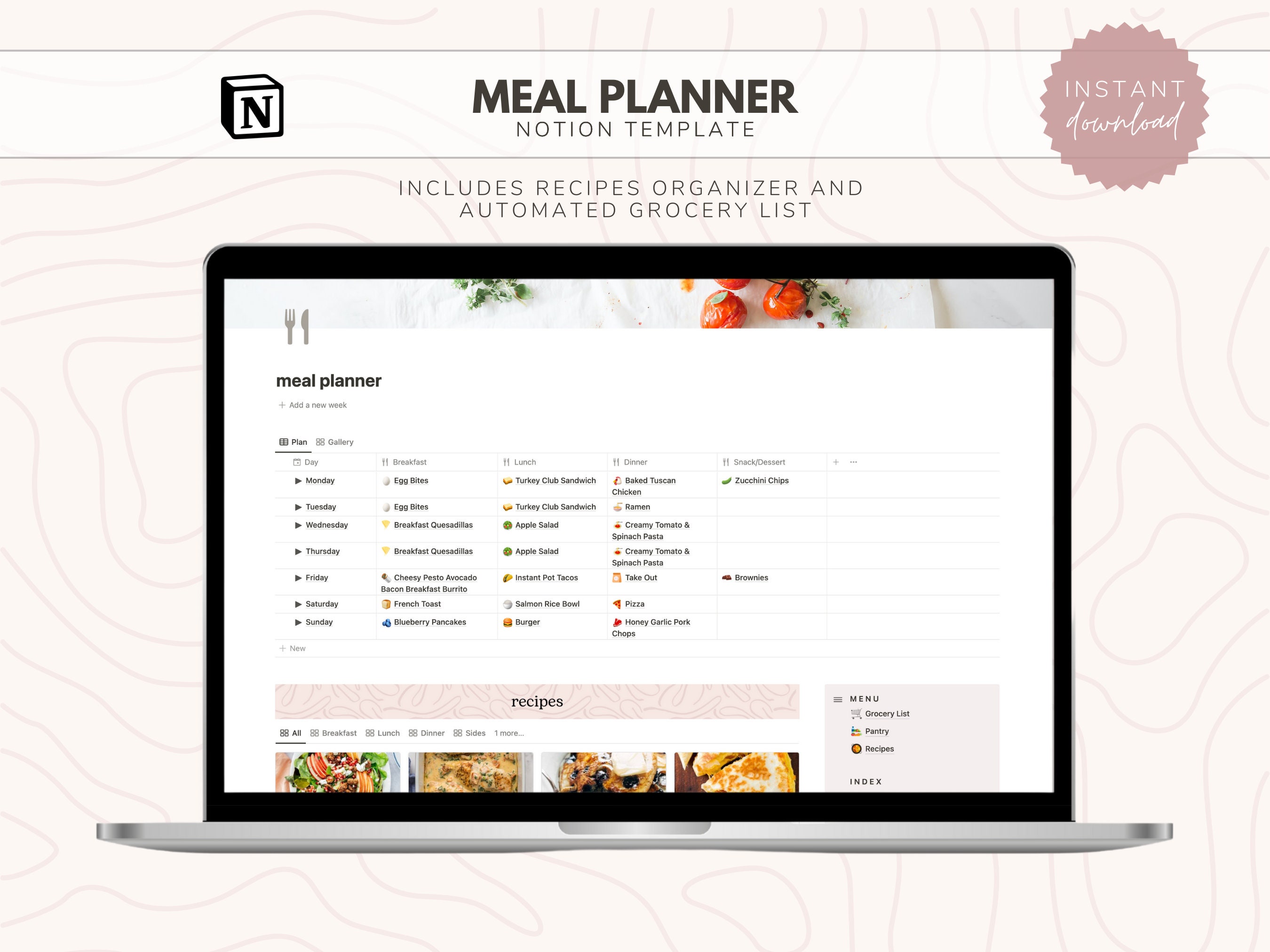 Meal Planner Notion Template Inkspire