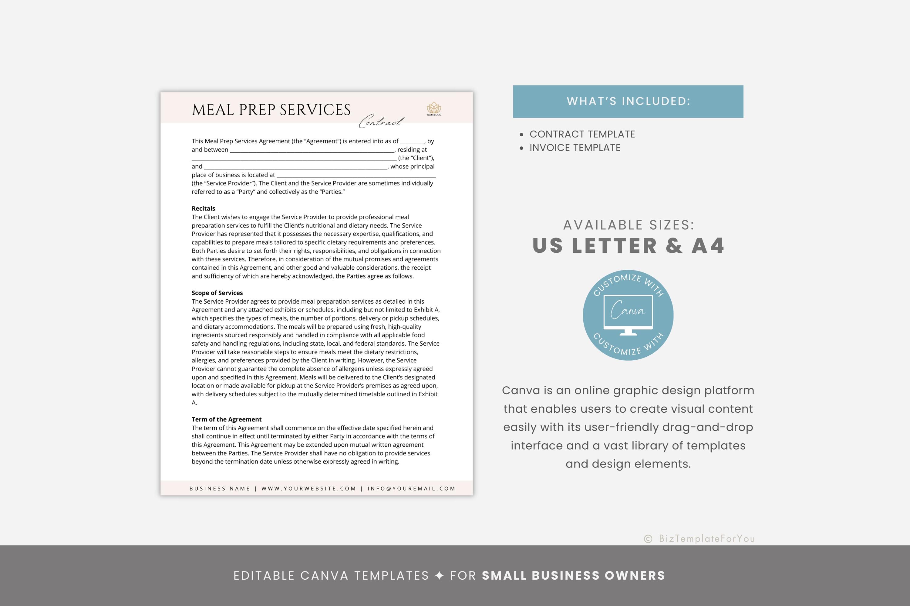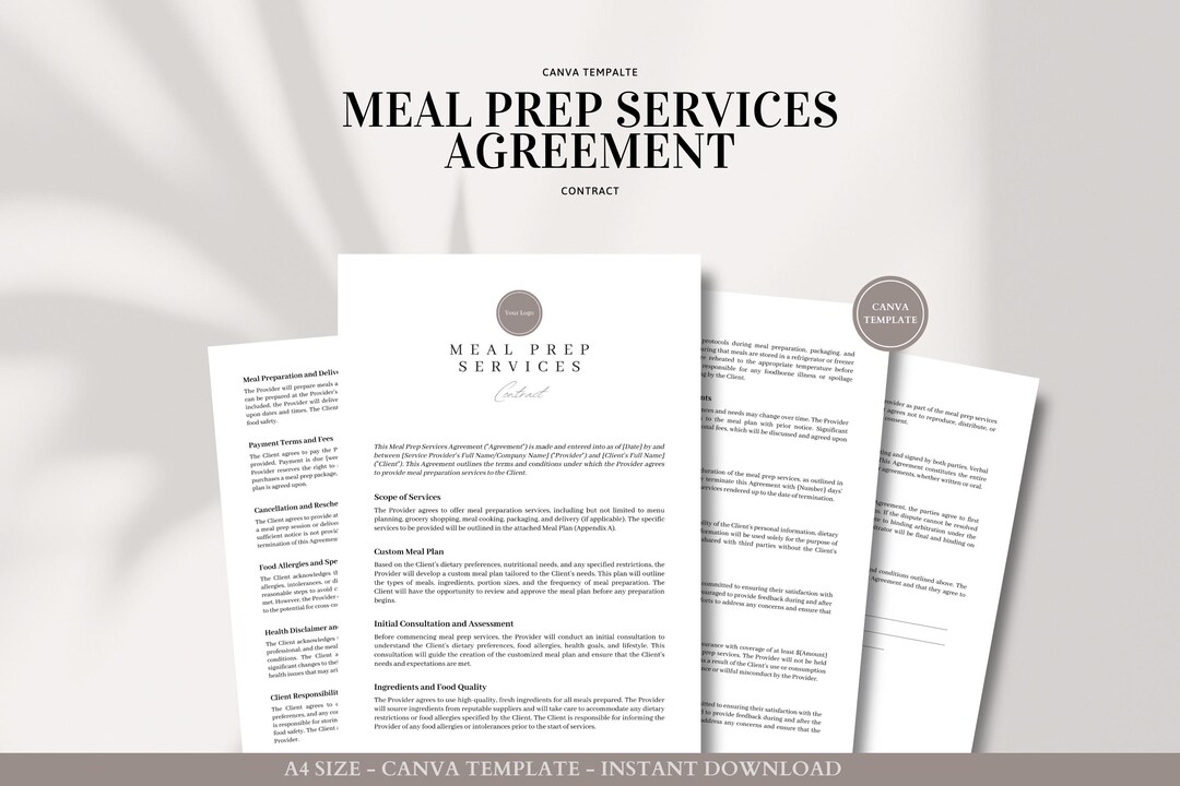 Meal Prep Services Agreement Canva Template Editable Canva Template