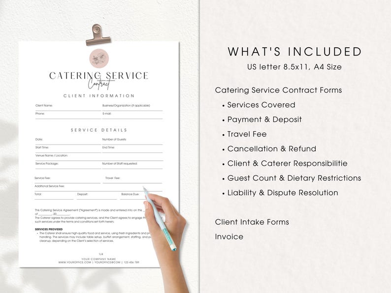 Editable FOOD CATERING Contract Template THOROUGH 5 Pages Ultra