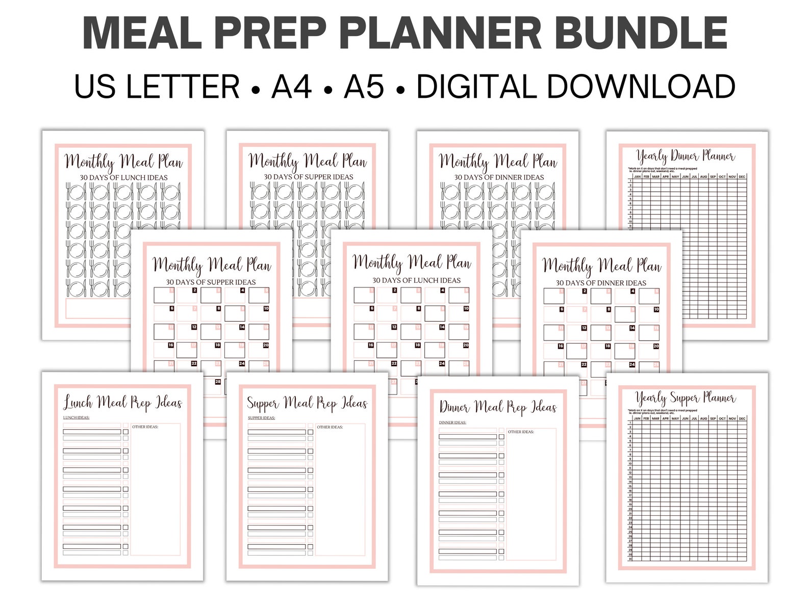 Meal Planner Printable Meal Prep Template Monthly Weekly Etsy
