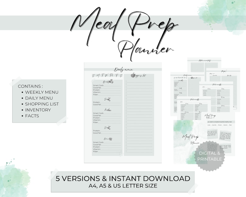 Meal Prep Planner Meal Prep Bundle Instant Download Printable