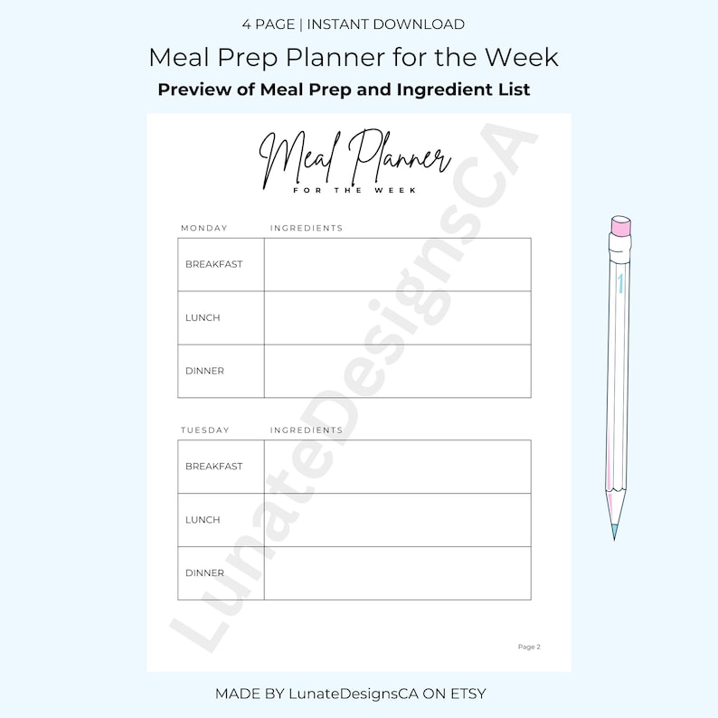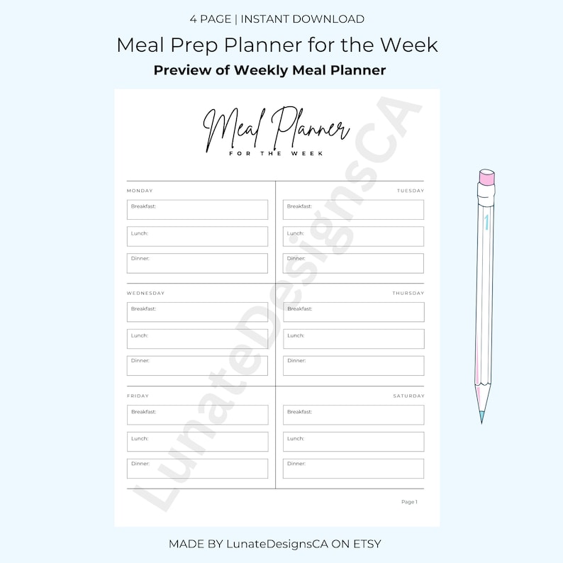 Meal Planner Printable Meal Prep Planner Instant Download Etsy
