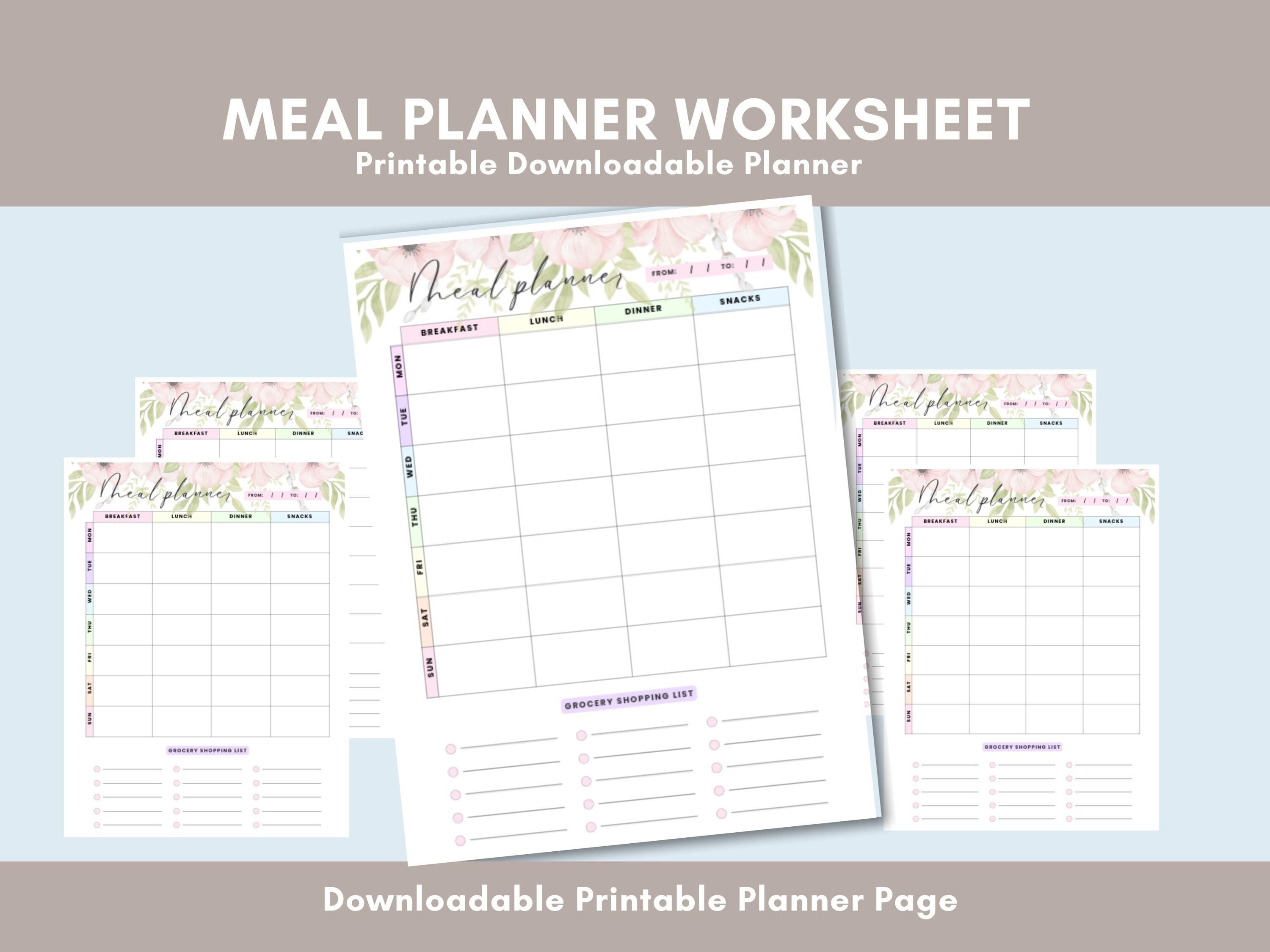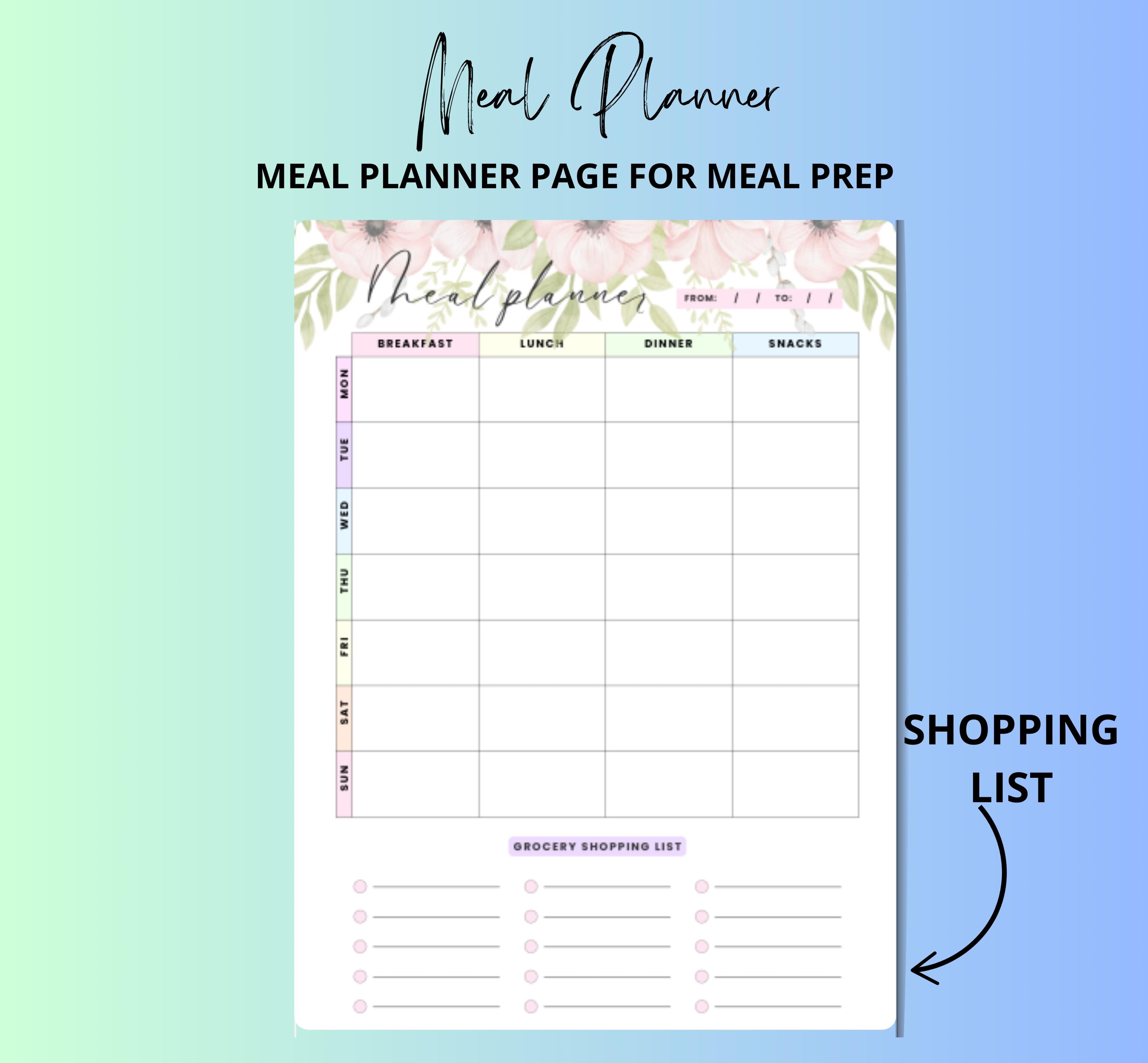 Printable Weekly Meal Prep Planner Digital Planner Pink Meal Prep