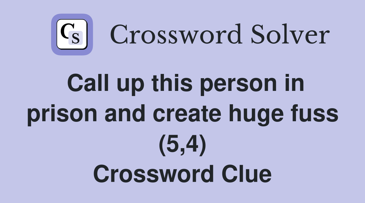 Call up this person in prison and create huge fuss (5 4) Crossword