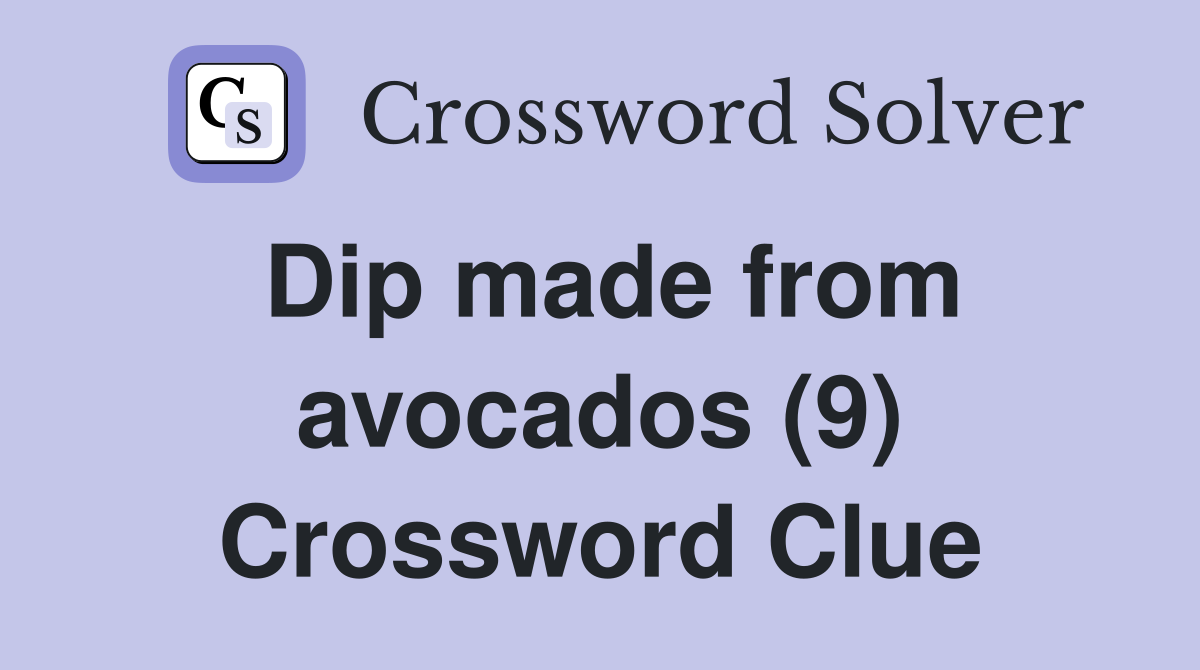 Dip made from avocados (9) Crossword Clue Answers Crossword Solver