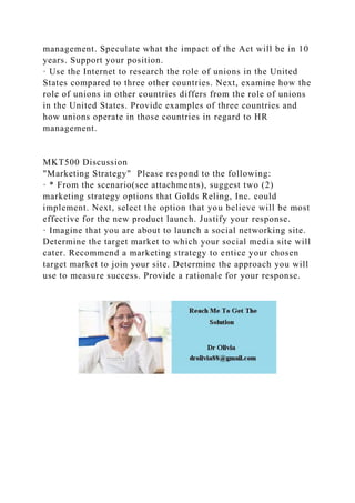 MKT 500 Week 10 Scenario Marketing Plans and Putting all Together docx