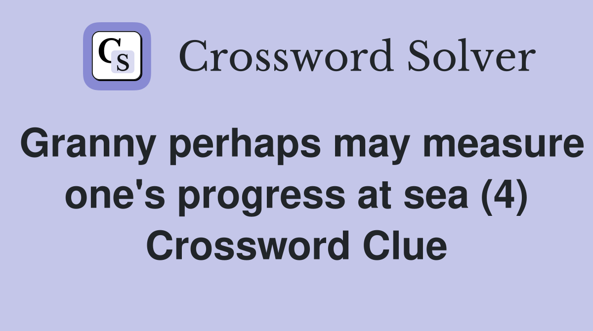 Granny perhaps may measure one #39 s progress at sea (4) Crossword Clue