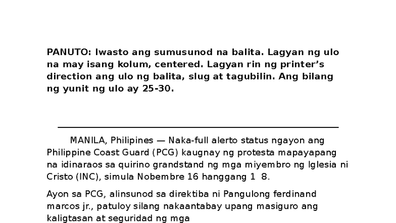 Pagwawasto at Pag uulo ng Balita Activity 2: PCG Alerto sa Protesta