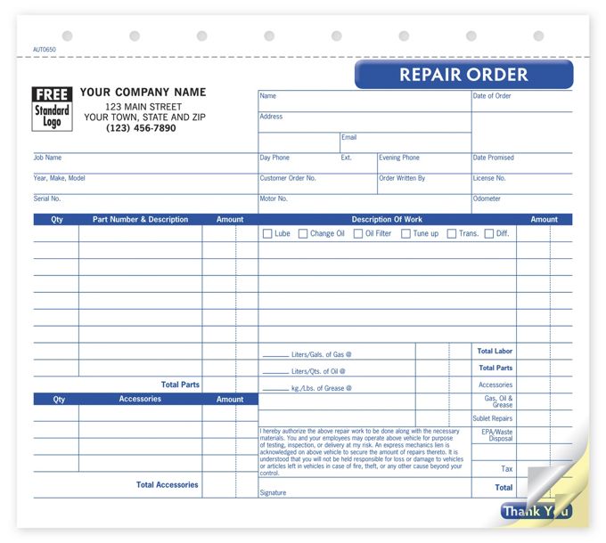 Auto Body Repair Work Order Template at Patricia Kibbe blog