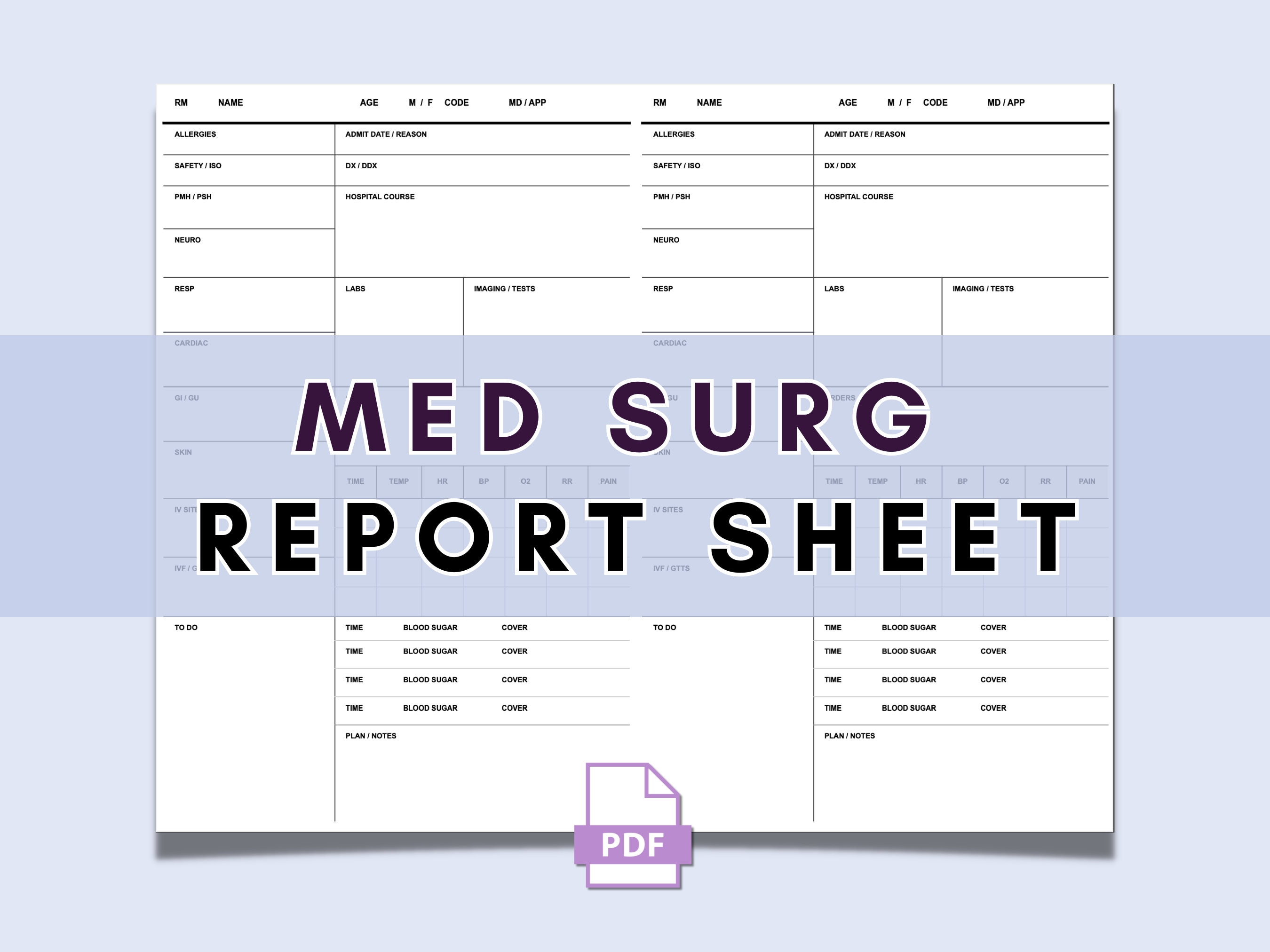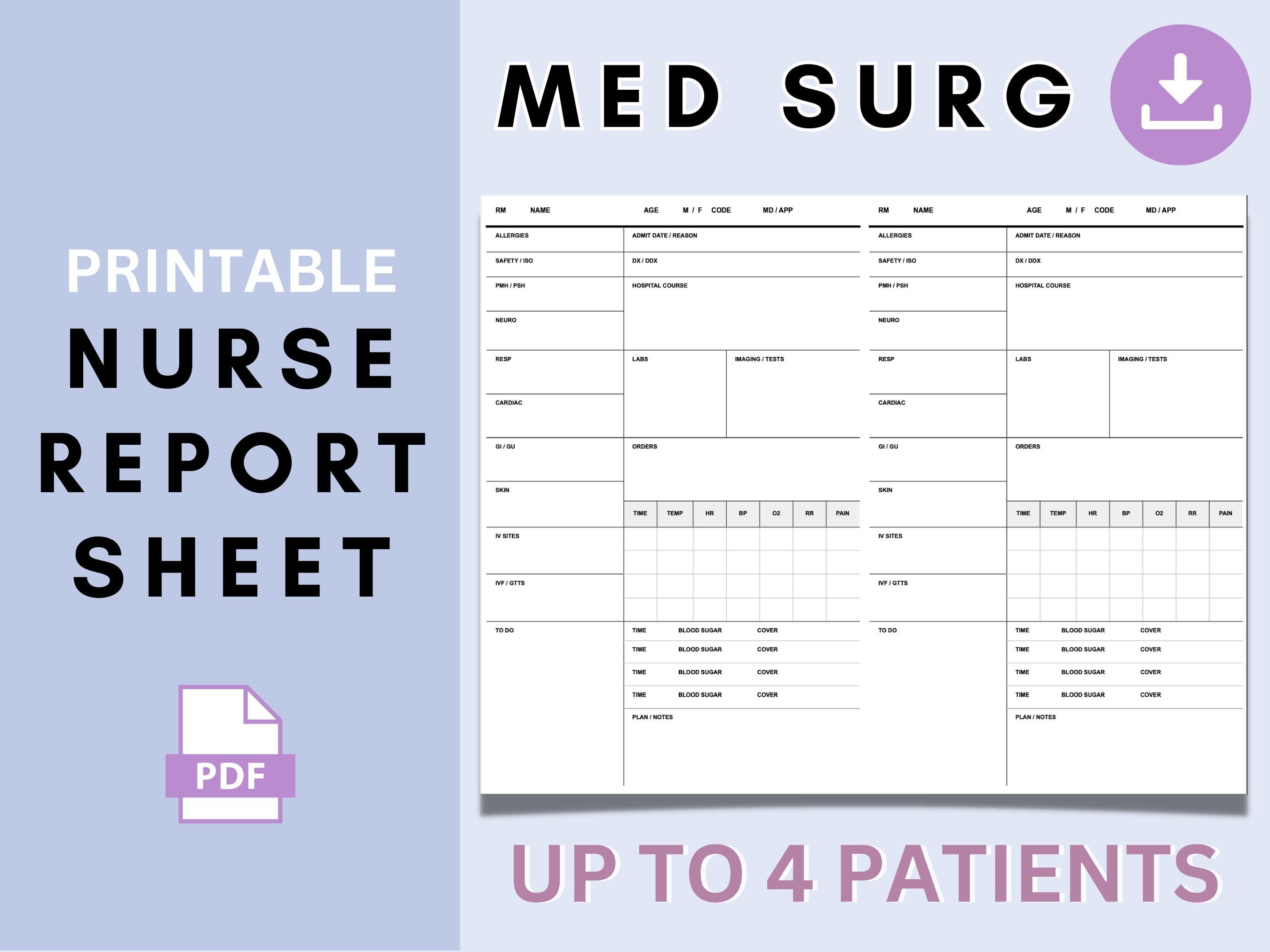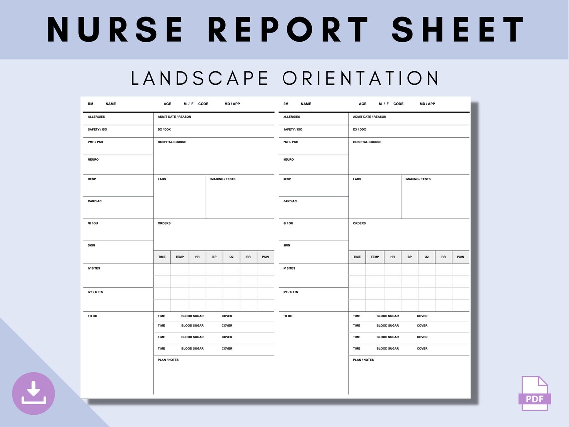 Med Surg Nurse Report Sheet Med Surg Nurse Brain Etsy