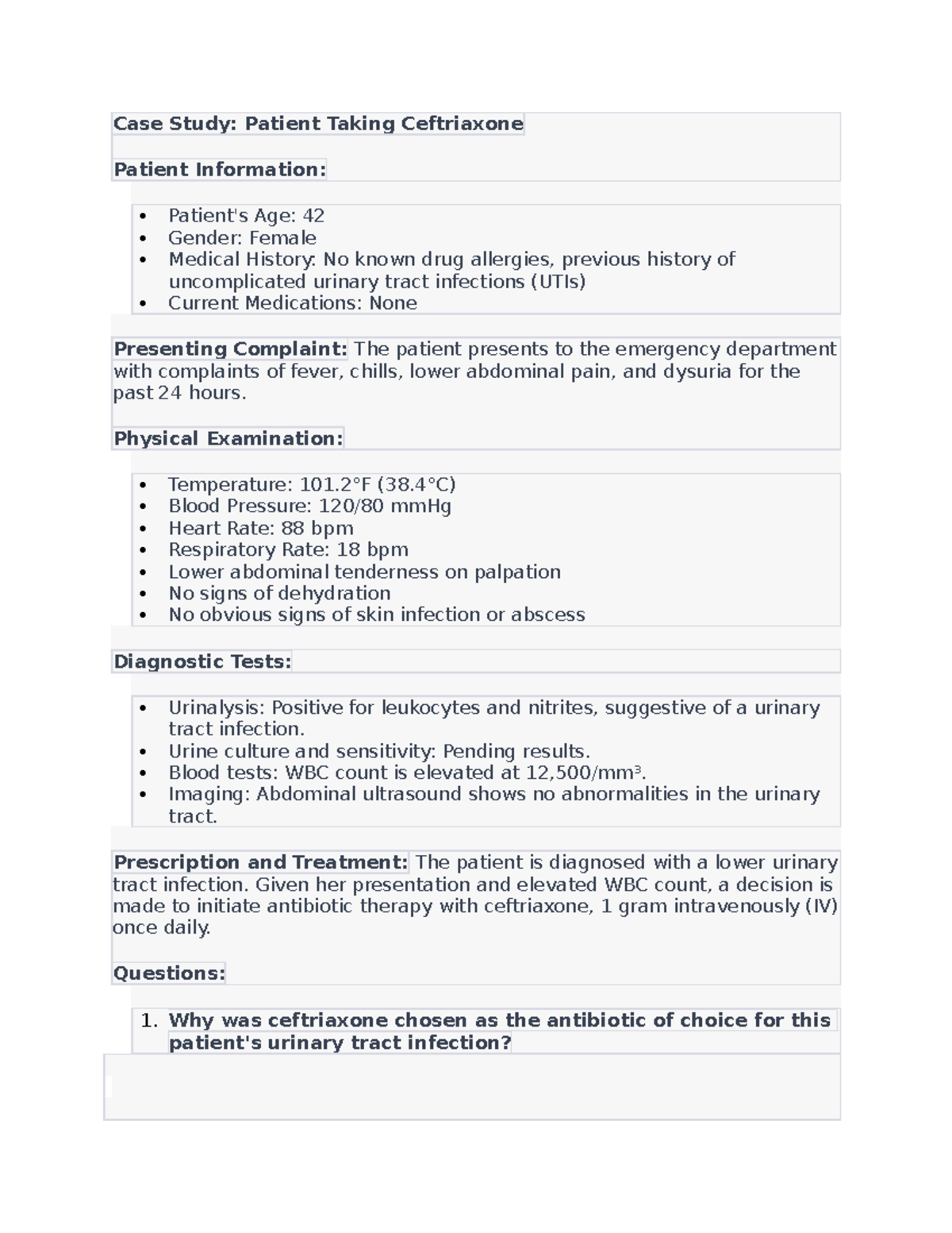 Case Study ceftriaxone Case Study: Patient Taking Ceftriaxone
