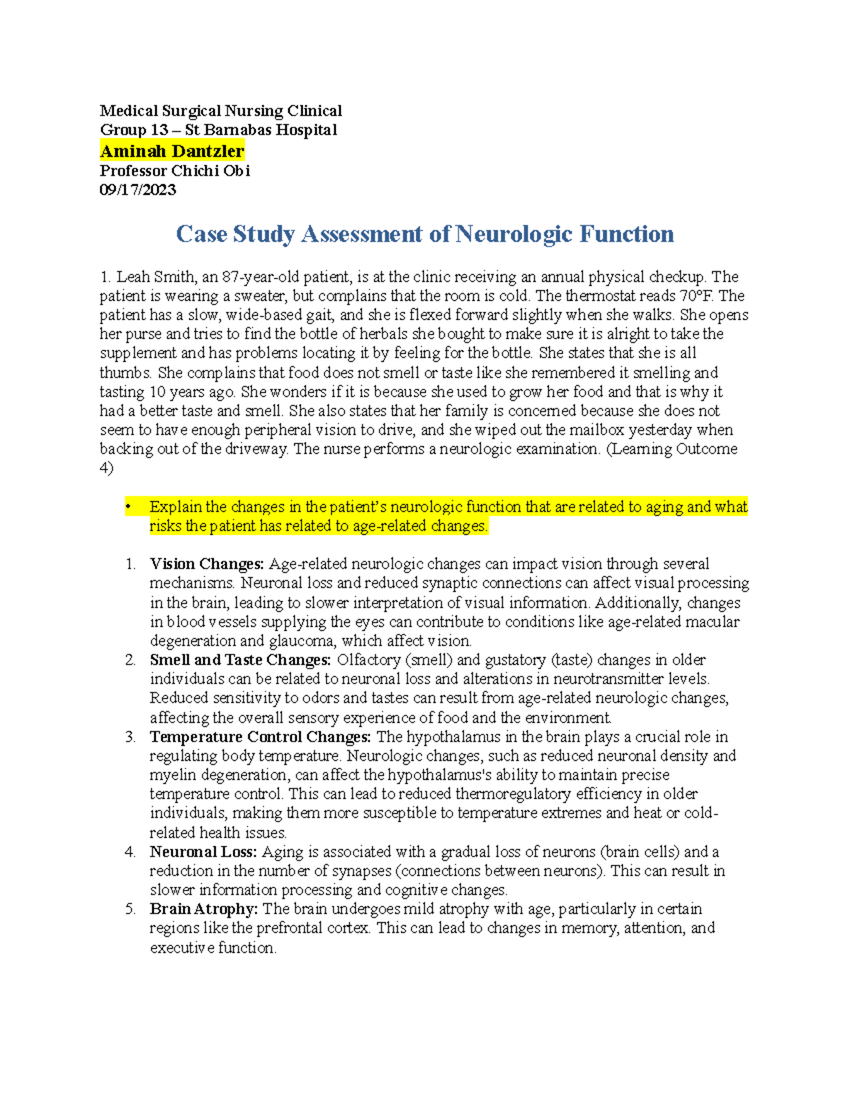 Neurologic Case Study 2 Medical Surgical Nursing Clinical Group 13