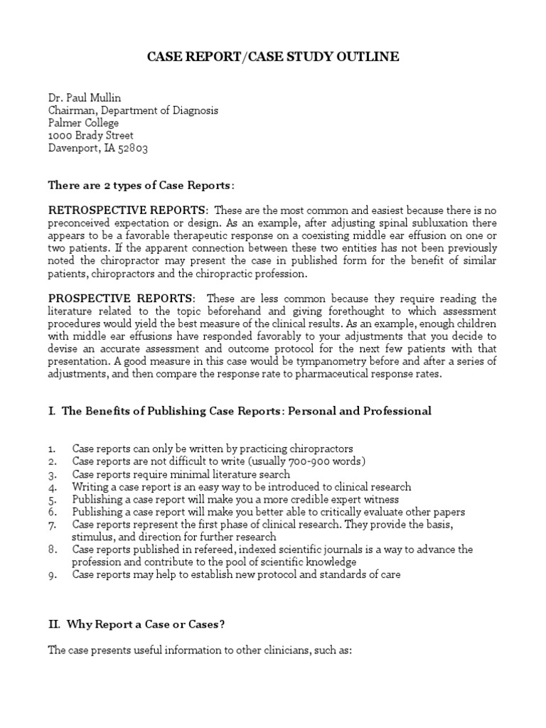 Case Report Outline PDF Chiropractic Case Report