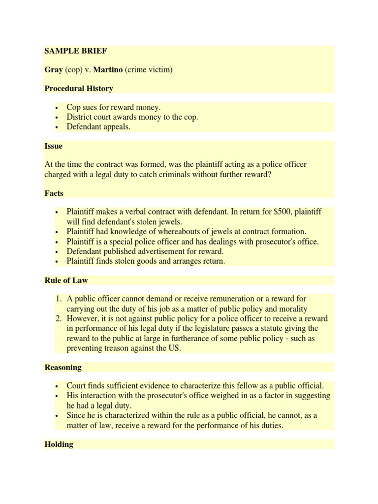 Case Brief Template 18 PDF