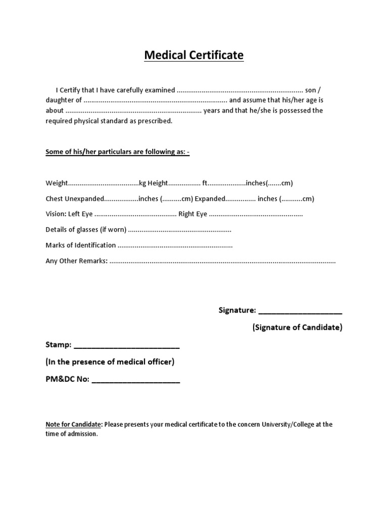 Medical Fitness Certificate Form / Format 2025 PDF InstaPDF