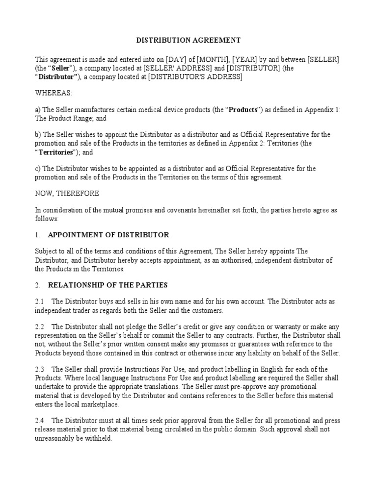 Medical Device Distributor Agreement Template