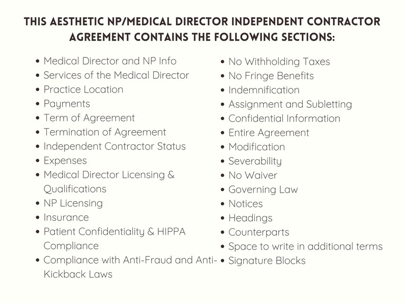 Medical Director Agreement 9 Pages IV Therapy Med Spa Etc Etsy