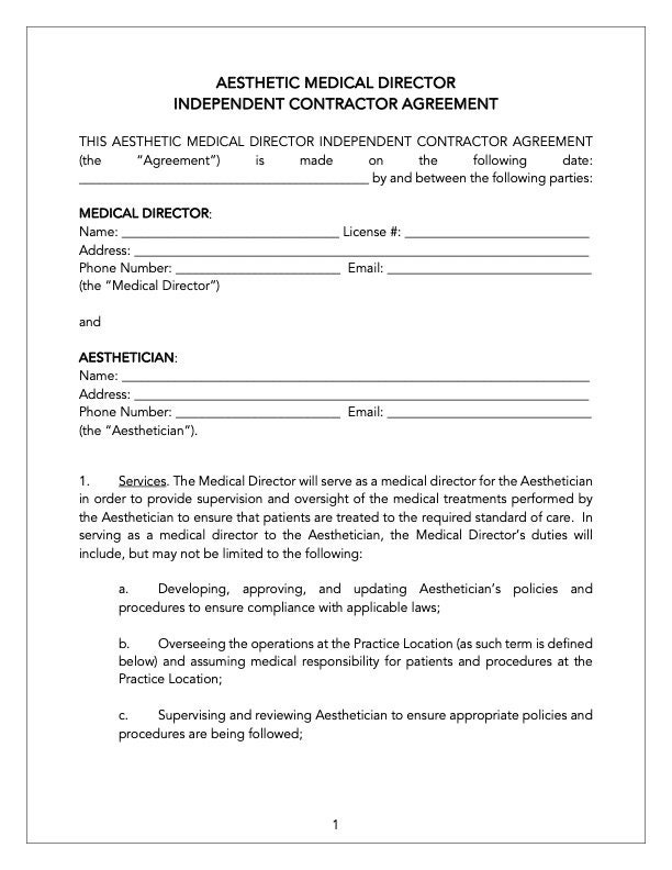Medical Director Independent Contractor Agreement Med Spa Medical