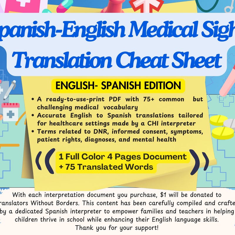 Medical Spanish Emergency Guide: English spanish Terminology (printable