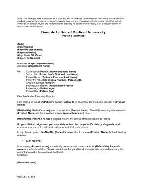 Free Sample Letter of Medical Necessity Template to Edit Online
