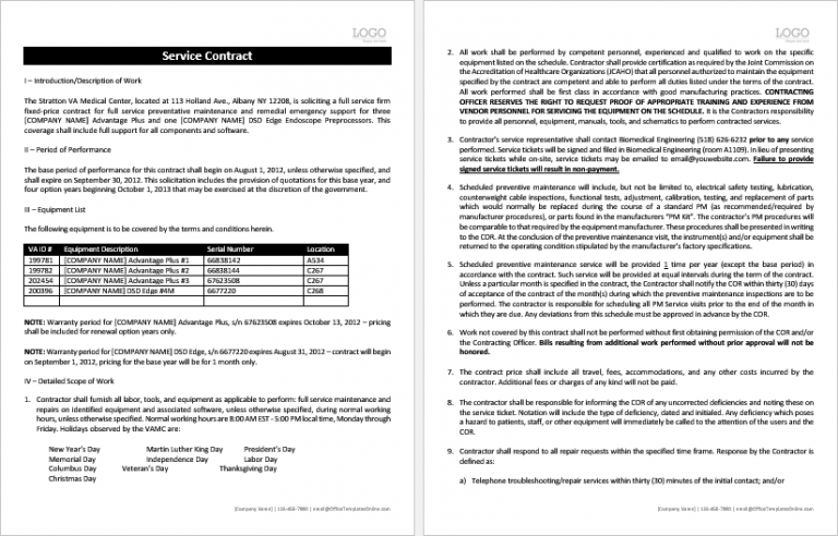 Contract For Service Agreement Template Forestryencyclopedia