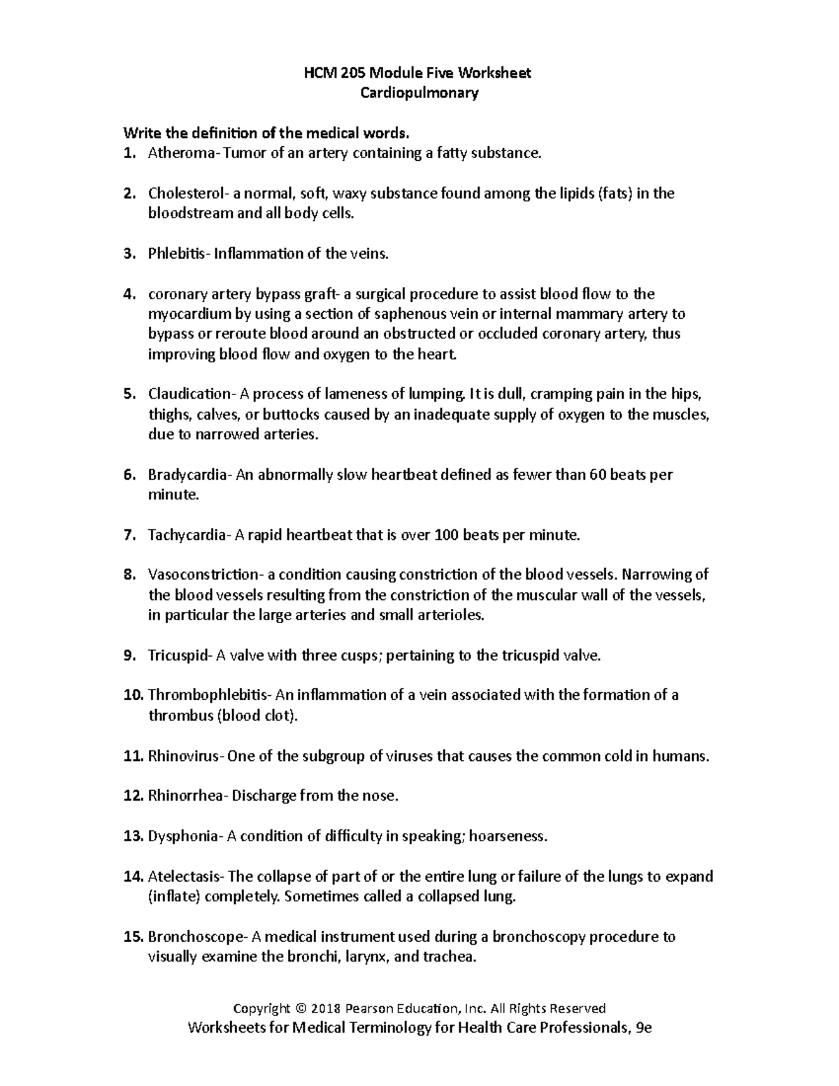 HCM 205 Module Five Medical Terminology Worksheet Answers Studocu
