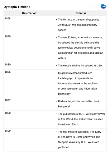 OCR A Level English Literature Dystopia Dystopia Timeline Teaching